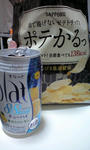 画像は関東圏限定らしいんだけど、一袋138キロカロリーのポテトチップスと、カロリーが低いチューハイ。