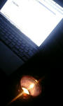 部屋の中はテレビの灯だけか、最近はろうそくです。